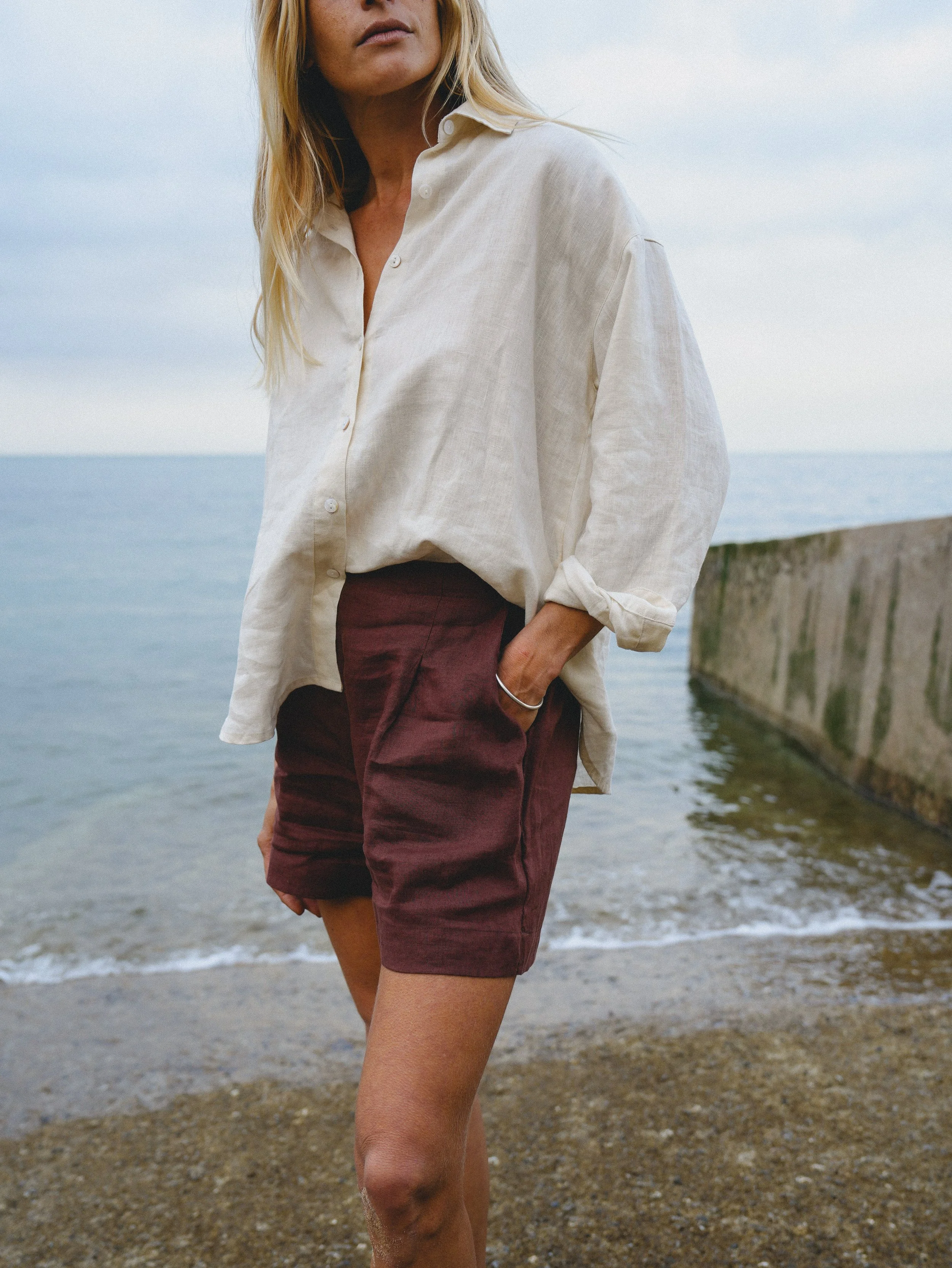 Skyper est un short taille haute en lin à la coupe structurée, légèrement oversize, qui allie confort et élégance. Grâce à son élastique au dos, il s'adapte parfaitement à toutes les morphologies tout en offrant une silhouette flatteuse.
